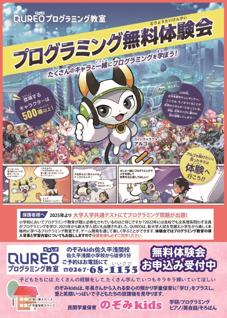 大人気のプログラミング教室が無料体験教室を開催いたします!